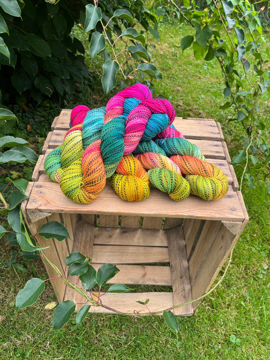 Mit unserer handgefärbten Wolle sind Deinen kreativen Fantasien keine Grenzen gesetzt. Ob...